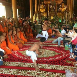 ខេត្តកំពង់ស្ពឺ ៖ ចៅអធិការវត្ត និងការកៈសង្ឃបានរងនូវការរិះគន់យ៉ាងខ្លាំងពីសំណាក់ពុទ្ធបរិស័ទខណៈដែលសិស្សគុណនិងអ្នកឧបដ្ឋាកព្រះអង្គមួយចំនួនបាននាំគ្នាបញ្ចេញក្បាច់គុនស្វារាំយ៉ាងរំពេននៅមុខមហាជនចូលរួមបុណ្យរាប់រយនាក់ ដោយឡែកអ្នកមានជំនឿបានលើកឡើងថា នេះជាបារមីចូលសណ្ឋិតមិនមែនព្រះអង្គនឹកឃើញធ្វើដោយចិត្តឯងនោះទេតែអ្នកខ្លះថាជាការរាំតាមភ្លេងពិណពាទ្យទៅវិញ។ ការបញ្ចេញក្បាច់គុនរាំតាមភ្លេងរបស់ព្រះចៅអធិការវត្តនេះធ្វើឡើងក្នុងពិធីបុណ្យចំរើនព្រះជន្មគម្រប់២២ព្រះវស្សា របស់ព្រះចៅអធិការគង់នៅវត្តពោធិសត្វគីរីរម្យ ខេត្តកំពង់ស្ពឺ ព្រះនាម ហៀក ឡឹង ។