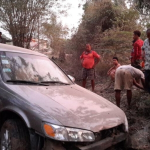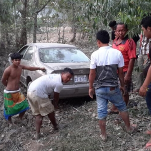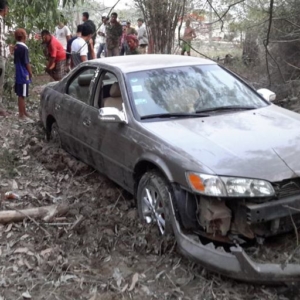 ខេត្តស្វាយរៀង ៖ បុរសស្រវឹងធ្លាក់ភ្នែកម្នាក់ បានបើករថយន្តកាមរីឆ្លាមលឿនដូចហោះលើផ្លូវជាតិលេខ១៣ ក៏បានជ្រុលធ្លាក់ផ្លូវទៅបុកចូលផ្ទះប្រជាពលរដ្ឋចំកណ្តាលផ្ទះបាក់រាបដល់ដី ហើយមិនទាន់អស់ល្បឿនក៏ជ្រុលទៅបុកដើមប្រេងខ្យល់រួចធ្លាក់ចូលក្នុងប្រឡាយកប់នៅទីនេះ តែសំណាងល្អផ្ទះដែលត្រូវរថយន្តបុកដួលរាបនោះមិនមានម្ចាស់នៅក្នុងផ្ទះទេ រីឯអ្នកបើកបររថយន្តក៏មិនរងរបួសដែរ ដោយសារបានពោងសុវត្ថិភាពការពារ ។