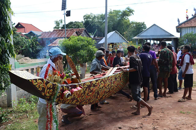ដោយឡែកថ្ងៃនេះ ក្រុមកីឡាករទូកងឈ្មោះក្តាមប្រៃ ដែលនឹងត្រូវដាក់ចូលទន្លេដើម្បីធ្វើការហ្វឹកហាត់ត្រៀមទៅចូលរួមប្រកួតនៅខេត្តកំពង់ចាម ដែលប្រព្រឹត្រទៅនៅថ្ងៃទី៩ និង ទី១០ ខែតុលាខាងមុខនេះ ក្នុងនាមអាជ្ញាធរខេត្ត ស្នងការនគរបាលខេត្ត និងលោកជំទាវ អ្នកតំណាងរាស្ត្រ សូមផ្តល់ជូននៅស្បៀង សម្ភារៈ និងថវិការមួយចំនួន ដើម្បីឧត្ថមដល់កីឡាករ ក្នុងរយៈពេលហ្វឹកហាត់ដើម្បីត្រៀមទៅប្រកូតផងដែរ។