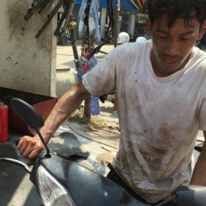 ប្រភពបន្តថា មុនពេលកើតហេតុ មានមានម៉ូយបានយកធុងសាំងមកឱ្យជាងផ្សារនៅទីតាំងកើតហេតុខាងលើ ។ មួយសន្ទុះ មិនដឹងខុសបច្ចេកបែបណា ស្រាប់តែធុងសាំងនោះផ្ទុះសូរក្ឌាំងឡើងកក្រើក និងមានអណ្តាតភ្លើងឆាបឆេះប៉ះលើជាងទាំង២នាក់នោះតែម្តង។