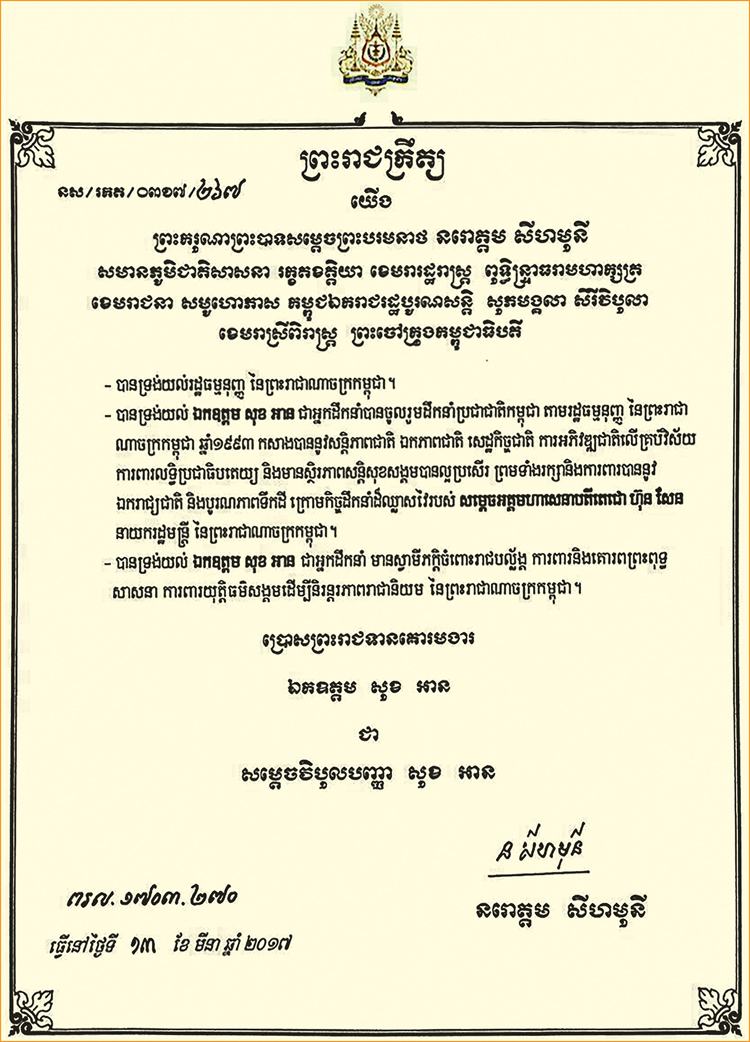 ឥស្សរជនទី8របស់ CPP លោកបណ្ឌិតសភាចារ្យ សុខ អាន​ ទទួលគោរមងារ «សម្តេចវិបុលបញ្ញា»