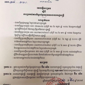 នេះបើយោងតាមសេចក្តីសម្រេចរបស់រាជរដ្ឋាភិបាលចុះថ្ងៃទី១៦ មីនា ២០១៧ ដែលចុះហត្ថលេខាដោយសម្តេចតេជោនាយករដ្ឋមន្ត្រី ៕