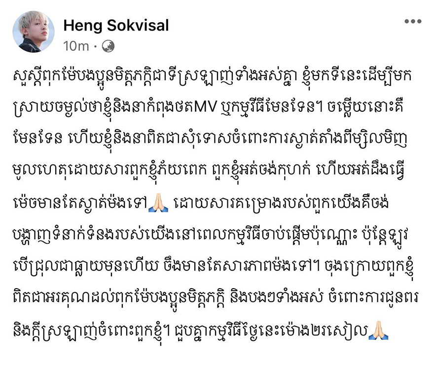 ទ្រាំលែងបាន! ហេង វិសាល ចេញមុខនិយាយគ្មានសល់ ក្រោយផ្ទុះចម្ងល់រឿងភ្ជាប់ពាក្យ
