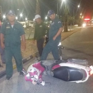 រាជធានីភ្នំពេញ ៖ បុរស២នាក់សង្ស័យស្រវឹងស្រាជិះម៉ូតូរេចង្កូតទៅបុកខឿនសួនច្បារពុះចែកទ្រូងផ្លូវអូសជាង២០ម៉ែត្ររងរបួសធ្ងន់២នាក់ បង្កឱ្យមានការភ្ញាក់ផ្អើលកាលពីវេលាម៉ោង១២និង២០នាទីរំលងអធ្រាត្រឈានចូលថ្ងៃទី១៧ មីនា តាមបណ្តោយផ្លូវសហព័ន្ធរុស្សី ទល់មុខប្រលានយន្តហោះអន្តរជាតិភ្នំពេញ ស្ថិតនៅភូមិក្បាលដំរី សង្កាត់កាកាប ខណ្ឌពោធិ៍សែនជ័យ ។