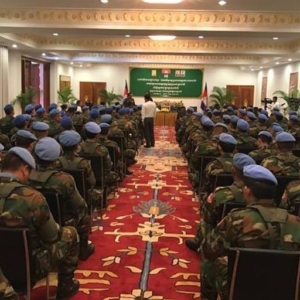 រាជធានីភ្នំពេញ ៖ លោក ប្រាក់ សុខុន រដ្ឋមន្ត្រីក្រសួងការបរទេស នៅថ្ងៃទី១៧ ខែមីនា ឆ្នាំ២០១៧ នេះ បានអញ្ជើញជូនដំណើរកម្លាំងកងវិស្វកម្មចំនួន៨០នាក់ទៅបំពេញបេសកកម្មជាមួយអង្គការសហប្រជាតិនៅប្រទេសសូម៉ាលី។ ពិធីនេះបានរៀបចំឡើងនៅក្រសួងការបរទេសកម្ពុជា ដោយមានការចូលរួមពីលោក សែម សុវណ្ណនី អនុប្រធានទី២មជ្ឈមណ្ឌល និងបោសសំអាតមីនកម្ពុជា និងកម្លាំងមួកខៀវដែលត្រូវចេញទៅកាន់ប្រទេសម៉ាលី។