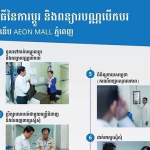 សូមបញ្ជាក់ថា ការរៀបចំឲ្យមាន មណ្ឌលប្តូរ និងពន្យាប័ណ្ណបើកបរ នៅផ្សារទំនើប AEON Mall នេះ ធ្វើឡើងក្នុងគោលបំណង ដើម្បីបង្ខិតសេវាឲ្យទៅជិតប្រជាពលរដ្ឋ បង្កភាពងាយស្រួល ចំណេញពេលវេលា កាត់បន្ថយការចំណាយ ប្រកប ដោយប្រសិទ្ធភាព និងតម្លាភាព ដែលអនុញ្ញាតឲ្យប្រជាជនខ្មែរទូទាំង២៥រាជធានីខេត្ត អាចទៅទទួលសេវាប្តូរ និងពន្យាប័ណ្ណបើកបរយានយន្ត រៀងរាល់ថ្ងៃ ចាប់ពីម៉ោង០៩ព្រឹក រហូតដល់ម៉ោង១០យប់ផងដែរ ៕