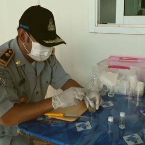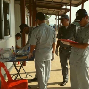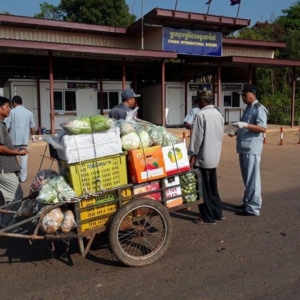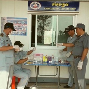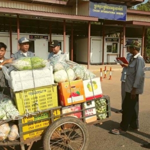 ខេត្តឧត្តរមានជ័យ ៖ នៅមាត់ច្រកទ្វារអន្តរជាតិជាំសាងាំ មន្ត្រីកាំកុងត្រូលបានធ្វើការត្រួតពិនិត្យ និងពិសោធន៍រាល់មុខទំនិញគ្រឿងឧបភោគ បរិភោគ ដើម្បីវិភាគរកសំណល់ថ្នាំកសិកម្ម និងសារធាតុគីមីហាមឃាត់ដែលនាំចេញពីប្រទេសថៃមកកម្ពុជា កាលពីព្រឹកថ្ងៃទី១៩ មីនា ២០១៧ ស្ថិតនៅក្នុងភូមិជាំ ឃុំត្រពាំងប្រីយ៍ ស្រុកអន្លង់វែង ខេត្តឧត្តរមានជ័យ។