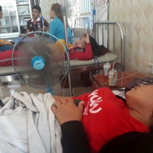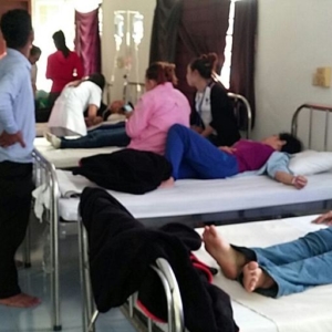រាជធានីភ្នំពេញ ៖ កម្មការិនីចំនួន៧៣នាក់ និងកម្មករម្នាក់ ខណៈកំពុងធ្វើការងារនៅក្នុងរោងចក្រកាត់ដេរសម្លៀកបំពាក់ «ធៀន