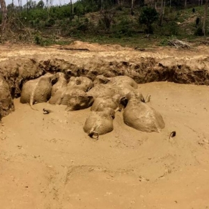 ខេត្តមណ្ឌលគិរី ៖ សេចក្តីរាយការណ៍ឱ្យដឹងបន្តថា ករណីសត្វដំរី១១ក្បាលក្នុងដែនជម្រកសត្វព្រៃកែវសីមា ដែលបានរអិលធ្លាក់ចូលទៅក្នុងរណ្តៅ ស្ថិតក្នុងភូមិអូរអាម ឃុំស្រែខ្ទុម ស្រុកកែវសីមា នោះ គឺមកដល់ម៉ោង៣រសៀលថ្ងៃទី២៥ មីនា ដដែលនេះ គឺកម្លាំងមន្ត្រីឧទ្យាននុរក្សដែនជម្រកសត្វព្រៃចំនួន១០នាក់ កំពុងតែព្យាយាមកាយដីរាងទេរ ដើម្បីធ្វើយ៉ាងណា ងាយស្រួលឱ្យដំរីអាចឡើងមកបាន ។