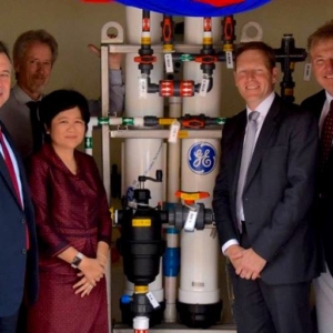 លោក Wouter Van Wersch ប្រធាន និងជានាយកប្រតិបត្តិក្រុមហ៊ុន GE ( General Electric ) ប្រចាំអាស៊ាន បានមានប្រសាសន៍ថា ការសម្ពោធថ្ងៃនេះ ហើយនិងកម្មវិធីទឹកស្អាតចំនួនប្រាំបួន ជាមួយនិងមន្ទីរពេទ្យចំនួន៩ ផ្សេងទៀត គឺជាគំរូមួយនៃភាពជាដៃគូរវាងវិស័យសាធារណៈ និងវិស័យឯកជន ដែលផ្តល់នូវអត្ថប្រយោជន៍ដោយផ្ទាល់ដល់ប្រជាជនរាប់ពាន់នាក់ ។លោកថា៖« យើងខ្ញុំមើលឃើញប្រទេសកម្ពុជា ដែលមានប្រជាពលរដ្ឋវ័យក្មេង និងមានសុទិដ្ឋិនិយម ថាជាកម្លាំងជំរុញដ៏សំខាន់មួយឆ្ពោះទៅរកកិច្ចអភិវឌ្ឍន៍ និងកំណែទម្រង់បរិយាកាសធុរកិច្ច ហើយយើងខ្ញុំសូមបញ្ជាក់ច្បាស់លាស់អំពីការប្តេជ្ញាចិត្តរយៈពេលវែងរបស់យើងខ្ញុំ នៅក្នុងប្រទេសនេះ ជាដៃគូមួយសម្រាប់ការរីកចម្រើន និងការអភិវឌ្ឍន៏» ។