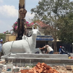 ខេត្តស្វាយរៀង ៖ លោក សំ សិរីរតន៍ អនុរដ្ឋលេខាធិការក្រសួងពាណិជ្ជកម្ម បានផ្តល់រូបគោធ្វើពីថ្មភក់ទម្ងន់៧តោនជាចំណងដៃ ជូនអាជ្ញាធរ និងប្រជាពលរដ្ឋខេត្តស្វាយរៀង។