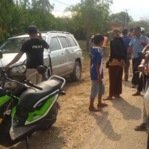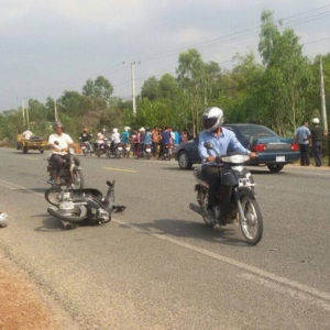 ខេត្តស្វាយរៀង ៖ បុរសម្នាក់រងរបួសធ្ងន់ធ្ងរ បែកក្បាល បែកមុខ និងរលាត់ដៃជើងសន្លប់ស្តូកស្តឹង បណ្តាលមកពីរថយន្តហាយឡែនឌ័របុកម៉ូតូពីក្រោយអូសជាង២០ម៉ែត្រ សន្លប់នៅនឹងកន្លែង។ គ្រោះថ្នាក់ចរាចរណ៍ដ៏រន្ធត់នេះកើតឡើងកាលពីវេលាម៉ោង២ និង៤០នាទីរសៀល ថ្ងៃទី២៨ ខែមីនា ឆ្នាំ២០១៧ នៅលើកំណាត់ផ្លូវជាតិលេខ១ ស្ថិតនៅភូមិចំបក់ សង្កាត់ចេក ក្រុងស្វាយរៀង។