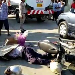 រាជធាននីភ្នំពេញ ៖ បុរសជាអ្នករត់ម៉ូតូឌុបម្នាក់ ត្រូវរថយន្តដឹកដីបើកជែងស្តាំ ទាក់ដៃចង្កូតដួលចូលក្រោមរថយន្ត ហើយកិនបែក ក្បាលស្លាប់នៅនឹងកន្លែង និងស្ត្រីម្នាក់បានរងរបួសធ្ងន់ ត្រូវបញ្ជូនទៅកាន់មន្ទីរពេទ្យកាល់ម៉ែត ។ បន្ទាប់ពីបង្កគ្រោះថ្នាក់រួច រថយន្តបានបើកគេចប្រមាណ១គីឡូម៉ែត្រ ទើបអ្នកបើកចុះរត់ ។