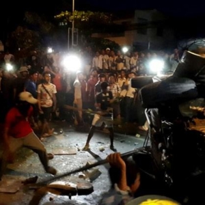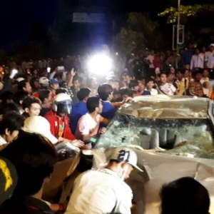 ភ្លាមៗនោះ រថយន្តនិងអ្នកបើកបរ ត្រូវបានក្រុមអ្នកធ្វើចរាចរណ៍មិនដឹងអ្នកណាខ្លះទេ យ៉ាងច្រើននាំគ្នាធ្វើការឡោមព័ទ្ធដេញចាប់ឃាត់បាន ដោយអ្នកខ្លះបាននាំគ្នាចោមរោមវាយដំទៅលើអ្នកបើកបររូបនោះ ដូចទឹកបាក់ទំនប់ បណ្តាលឱ្យរងរបួសយ៉ាងធ្ងន់ធ្ងរហើយ កុំតែមានការរារាំងអំពីសំណាក់កម្លាំង ។