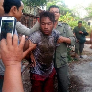 រីឯសមត្ថកិច្ចពេលដេញតាមចោរទៅដល់ចំណុចនោះបាត់ដាននៅមាត់ស្រះ ក៏មានការសង្ស័យថា ជននេះអាចនឹងមុជទឹកគេចខ្លួនក្នុងស្រះ ហើយបាននាំគ្នាស្រែកឱ្យចេញពីក្នុងទឹកជាបន្ទាន់ ព្រមទាំងនាំគ្នាយកឈើស្រួចដើរចាក់ស្មានៗ តាមស្មៅ និងកំប្លោកក្នុងទឹកគ្រប់កន្លែង ដោយខ្លះគប់ដុំថ្មបង្អើលផង ។ ប្រហែលជាងកន្លះម៉ោង ទើបជននោះទ្រាំងអត់ដង្ហើមលែងបានក៏ស្ទុះងើបឡើងពីក្នុងទឹក ក៏ត្រូវសមត្ថកិច្ចក្របួចជាប់តែម្តង ។ ក្រោយការចាប់ខ្លួន សមត្ថកិច្ចបាននាំមកកសាងសំណុំរឿងបញ្ជូនទៅតុលាការតាមនីតិវិធីច្បាប់ ។