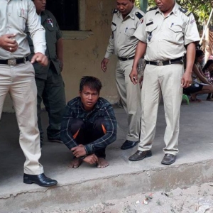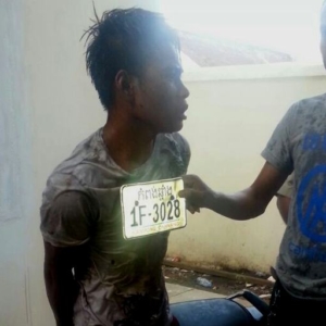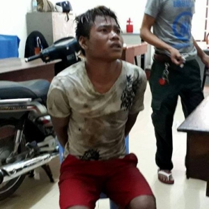 ប្រភពដដែលបានបន្តថា ក្រោយពីកំណត់មុខសញ្ញាបានហើយ ក៏ដាក់កម្លាំងស្វែងរកស្រាប់តែនៅព្រឹកថ្ងៃទី២៩ មីនា សមត្ថកិច្ចបានឃើញមុខសញ្ញាកំពុងជិះម៉ូតូយា៉ងរំភើយ ក៏បាននាំគ្នាដេញចាប់ ។ ពេលនោះជនល្មើសទាល់ច្រកបានលោតចោលម៉ូតូហើយព្យាយាមរត់គេចខ្លួនលោតចូលទៅសម្ងំលាក់ខ្លូននៅក្នុងទឹកស្រះក្បែររបងបន្ទាយតំបន់សឹករង ដែលមានស្មៅត្រឹបអណ្ដែតដុះក្រាស់ឃ្មឹក ។