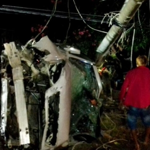 ឡិចស៊ីសRX300 បុកចូលទៅរបងផ្ទះពលរដ្ឋ រួចបន្តទៅបុកបង្គោលភ្លើង២ដើម បណ្តាលឱ្យរថយន្តក្រឡាប់ចាក់មនុស្សចោលពេញផ្លូវ ។