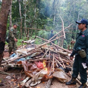 ខេត្តប៉ៃលិន ៖ ក្រុមសមត្ថកិច្ចចម្រុះចំនួន៦នាក់បានធ្វើការចុះបង្ក្រាប និងរុះរើកន្លែងជំរករបស់ជនសង្ស័យដែលបានលួចបោះជំរុំ