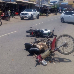 ស្រវឹងស្រាជោកជាំបើកបរម៉ូតូក្នុងល្បឿនលឿនជ្រុលទៅបុកជាមួយម៉ូតូឆ្លងផ្លូវ