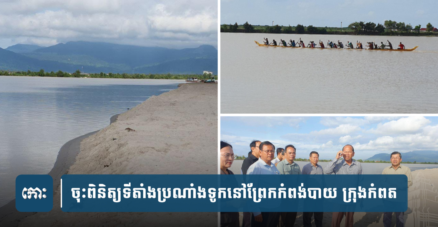 ខេត្តកំពត ៖ ឯកឧត្តមម៉ៅ ធនិន អភិបាលខេត្តកំពត អមដំណើរលោកអភិបាលរងខេត្ត លោកអភិបាលស្រុកទឹកឈូ និងលោកអភិបាលក្រុងកំពត រួមលោកប្រធានមន្ទីរនានាជុំវិញខេត្តកំពត កាលពីព្រឹកថ្ងៃទី21 តុលា ឆ្នាំ2022 បានចុះពិនិត្យមើលទីតាំងប្រណាំងទូកនៅតាមបណ្ដោយព្រែកកំពង់បាយ ស្ថិតក្នុងភូមិសាស្ត្រក្រុងកំពតចាប់ពីជញ្ជាំងផ្ទះលោកស្នងការ រហូតដល់ទីស្នាក់ការកងទ័ពជើងទឹក ប្រចាំទិសកំពតកែប ដោយស្ថិតនៅចំណុចកោះស្មៅ ក្នុងដីស្រុកទឹកឈូមួយផ្នែក ។