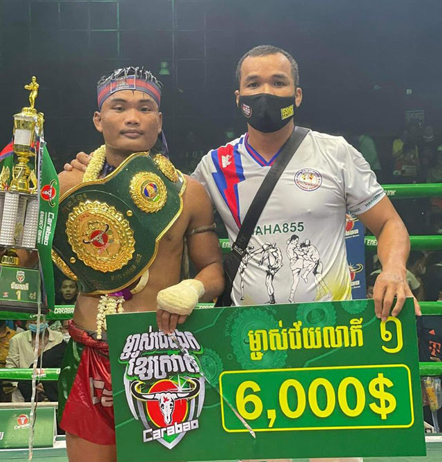 រាជធានីភ្នំពេញ ៖ បន្ទាប់ពីតស៊ូគ្នា៥ទឹកពេញក្នុងវគ្គផ្ដាច់ព្រ័ត្រ អ្នកប្រដាល់គុនខ្មែរ ពេជ្រ សម្បត្តិ ត្រូវបានចៅក្រមផ្តល់ពិន្ទុឲ្យឈ្នះកីឡាករថៃ ផាត់ថាណា ដើម្បីក្លាយជាម្ចាស់ជើងឯកខារ៉ាប៉ាវ រដូវកាលទី៨ ឆ្នាំ២០២២ អមដោយប្រាក់រង្វាន់៦ពាន់ដុល្លារកាលពីយប់ថ្ងៃទី២៣ តុលា នៅសង្វៀនបាយ័នស្ទឹងមានជ័យ ។