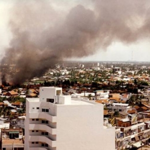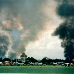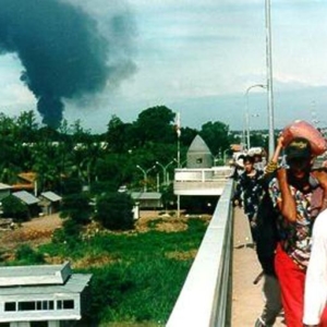 ជាមួយស្នូរកាំភ្លើងដែលក្មេងជំនាន់ក្រោយពុំធ្លាប់ឮ ហើយមនុស្សវ័យចំណាស់ខានស្តាប់ជាច្រើនឆ្នាំមកហើយនោះ ក្តីរន្ធត់មានពេញមួយយប់ និងបន្តរហូតដល់ព្រឹកថ្ងៃទី៦ កក្កដា ។ ព្រឹកនោះទីក្រុងមានសភាពដូចជាត្រូវគេបោះបង់ចោលជាយូរមកហើយ ពីតាមផ្ទះនានាឃើញតែមនុស្សអើតក្បាលរហង់សម្លឹងទៅទិសខាងលិចឆៀងខាងត្បូងម្តុំពោធិ៍ចិនតុង មើលអណ្តាតភ្លើងឆេះក្រហមមេឃ ផ្សែងខ្មៅអណ្តែតឡើង និងមានកម្ទេចកម្ទីពណ៌ស តូចៗធ្លាក់ចុះមកផង ។ គ្មាននរណាដឹងថាភ្លើងកំពុងបំផ្លាញអ្វីនោះទេ ។