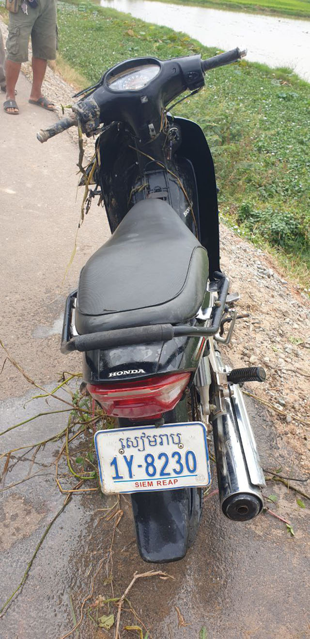 ខេត្តសៀមរាប ៖ ប្រជាពលរដ្ឋបានទៅបូមទឹកដាក់ស្រែនៅចំណុចទួលត្រពាំងចក តាមបណ្ដោយផ្លូវទៅភ្នំក្រោម ស្ថិតក្នុងភូមិក្រសាំងរលើង សង្កាត់សៀមរាប ក្រុងសៀមរាប ស្រាប់តែប្រទះឃើញស.ព បុរសម្នាក់ និងម៉ូតូ ព្រមទាំងមួកការពារ និងកាបូបលុយនៅក្នុងទឹកប្រឡាយ រួចរាយការណ៍ជូនអាជ្ញាធរមូលដ្ឋានចុះពិនិត្យ ។