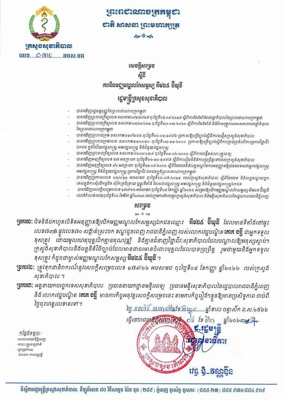 ក្រសួងសុខាភិបាល បានបញ្ជាក់ថា ការបិទមជ្ឈមណ្ឌលកែសម្ផស្សខាងលើនេះដែលមានទីតាំងនៅផ្ទះលេខ៧៣B ផ្លូវលេខ៧០ សង្កាត់ស្រះចក ខណ្ឌដូនពេញ រាជធានីភ្នំពេញ ជារបស់លោកវេជ្ជបណ្ឌិត គោគ ចន្ទី ជាអ្នកទទួលខុសត្រូវ ដោយសារតែបុគ្គលិកគ្មានគុណវុឌ្ឍ និងគ្មានជំនាញវិជ្ជាជីវៈសុខាភិបាលបណ្ដាលឱ្យមនុស្សស្លា.ប់។