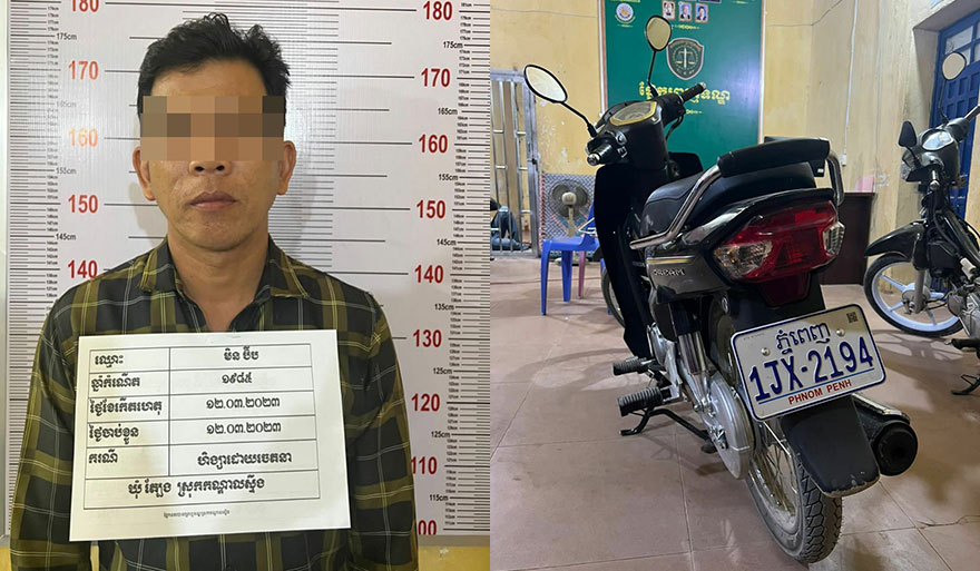 ខេត្តកណ្ដាល ៖ បុរសម្នាក់មានមុខរបរជាកម្មកររោងចក្រ កាលពីថ្ងៃទី១២ ខែមីនា ឆ្នាំ២០២៣ ត្រូវបានសមត្ថកិច្ចនគរបាលស្រុកកណ្តាលស្ទឹង ខេត្តកណ្តាល ធ្វើការឃាត់ខ្លួន ពាក់ព័ន្ធករណី ផ្លោះរបងចូលទៅចាប់អតីតប្រពន្ធដែលបានលែងលះគ្នាដាច់ស្រេច លើកដាក់ម៉ូតូ ហើយក៏ជិះទៅបុកធុងទឹកកក ធ្វើឲ្យខាងស្រីរត់ចូលផ្ទះវិញ ទើបខាងប្រុសគំរា.មថា «បើអត់អញ កុំសង្ឃឹមថា មាននរណាប៉ះបានឲ្យសោះ»។