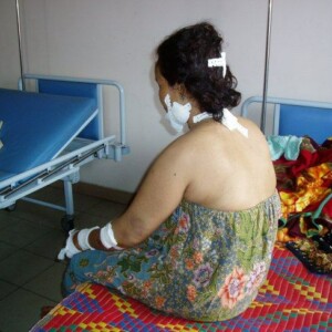 ខេត្តកំពង់ចាម ៖ ស្ត្រីម្នាក់ឈ្មោះម៉ាត់ សុខអ៊ាង អាយុ៤១ឆ្នាំ រស់នៅភូមិខ្ញូងលើ ឃុំមហាខ្ញូង ស្រុកកោះសូទិន បានរងរបួស៦កាំបិតលើរាងកាយ និងក្បាល បណ្តាលឱ្យហូរឈាមស្រោចពេញខ្លួន ហើយត្រូវបានក្រុមសាច់ញាតិនាំមកសង្គ្រោះនៅមណ្ឌលសុខភាព តែគ្រូពេទ្យមិនហ៊ានព្យាបាលព្រោះរបួសធ្ងន់ធ្ងរពេក ក៏ដឹកតាមរថយន្តយកទៅសង្គ្រោះនៅមន្ទីរពេទ្យខេត្តជាបន្ទាន់ ។