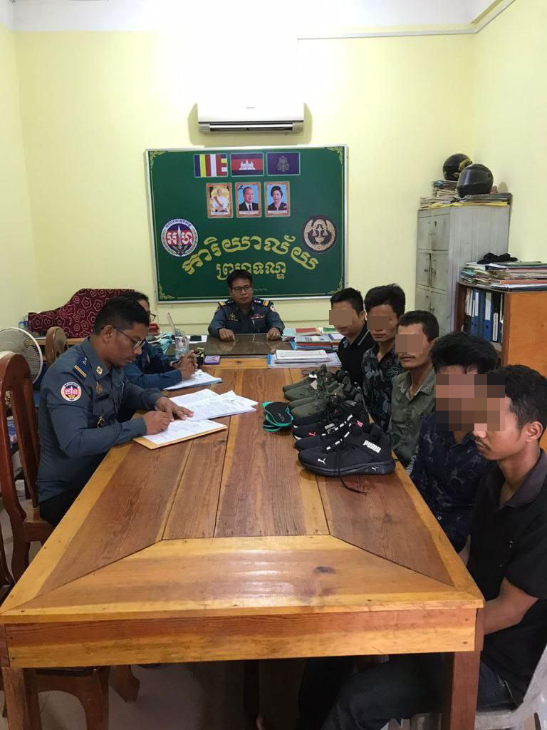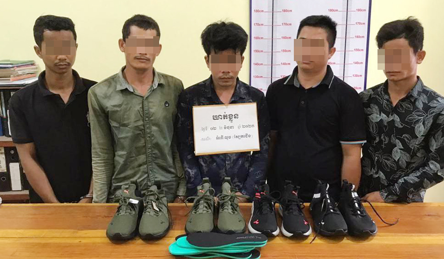 ខេត្តតាកែវ ៖ ជនសង្ស័យចំនួន៥នាក់ ត្រូវកម្លាំងកងរាជអាវុធហត្ថខេត្តធ្វើការស្រាវជ្រាវចាប់ខ្លួនបានជាបន្តបន្ទាប់ ខណ:ពេលដែលក្រុមជនសង្ស័យបានធ្វើសកម្មភាពលួចយកស្បែកជើងចេញពីរោងចក្រ រួចត្រូវមន្ទីជំនាញបានកសាងសំណុំរឿង ដើម្បីបញ្ជូនទៅសាលាដំបូងខេត្តចាត់ការតាមច្បាប់ ។