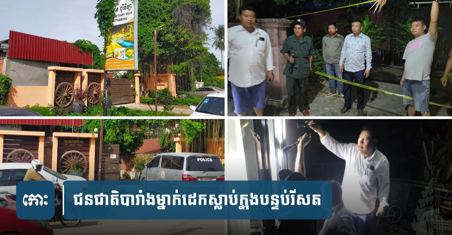 ខេត្តបាត់ដំបង ៖ បាត់មុខបីថ្ងៃមិនឃើញជនជាតិបារាំងម្នាក់ចេញក្រៅបន្ទប់ ស្រាប់តែអ្នកបរើការបានប្រទះឃើញជនបរទេសរូបនេះ ដេកស្លាប់ក្នុងស្ថានភាពហើបស្អុយទៅហើយ នៅក្នុងបន្ទប់«រីសត»មួយកន្លែង ដែលបានជូលស្នាក់នៅជាប្រចាំ ស្ថិតក្នុងភូមិជ្រៃកោង សង្កាត់ស្លាកែត ក្រុងបាត់ដំបង និងបង្កឲ្យមានការភ្ញាក់ផ្អើល កាលពីវេលាម៉ោងប្រហែល១១យប់ថ្ងៃទី១៨ មិថុនា ហើយម្ចាស់ «រីសត»នេះ ក៏បានរាយការណ៍ប្រាប់សមត្ថកិច្ចភ្លាមៗដែរ ដើម្បីជួយអន្តរាគមន៍។