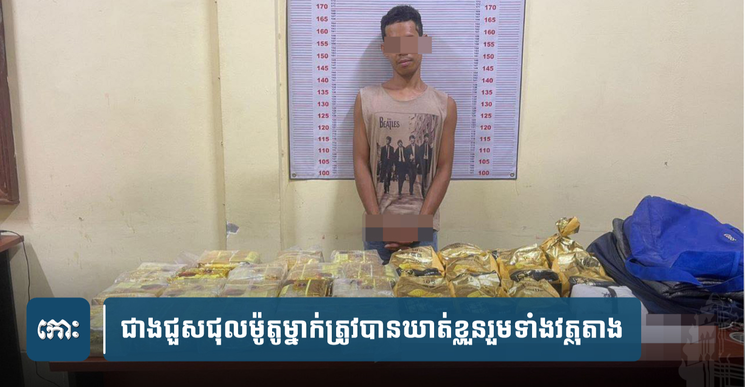 ខេត្តបាត់ដំបង ៖ ជាងជួសជុលម៉ូតូម្នាក់ ទំនងរកចំណូលបានតិចតួចពេក ក៏មានមហិច្ចតាលោភលន់ ងាកទៅចាប់យកមុខជំនួញគ្រឿងញៀនបន្ថែមទៀត តែត្រូវបានកម្លាំងកងរាជអាវុធហត្ថខេត្ត តាមដាន រហូតត្រូវឃាត់ខ្លួនបាន និងដកហូតវត្ថុតាងគ្រឿងញៀនបានចំនួនជាង៣០គីឡូក្រាម រួមទាំងវត្ថុតាងពាក់ព័ន្ធមួយចំនួនទៀត កាលពីរសៀលថ្ងៃទី១៩ មិថុនា នៅចំណុចភូមិកាប់គោថ្មី សង្កាត់អូរចា ក្រុងបាត់ដំបង ។