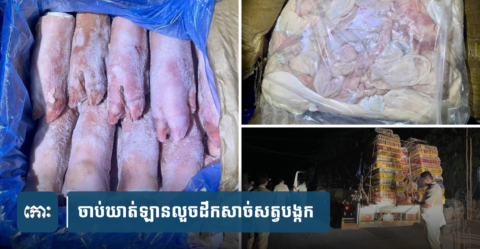ចាប់បានសាច់សត្វបង្កកនាំចូលពីវៀតណាមតាមច្រករបៀងខេត្តតាកែវ