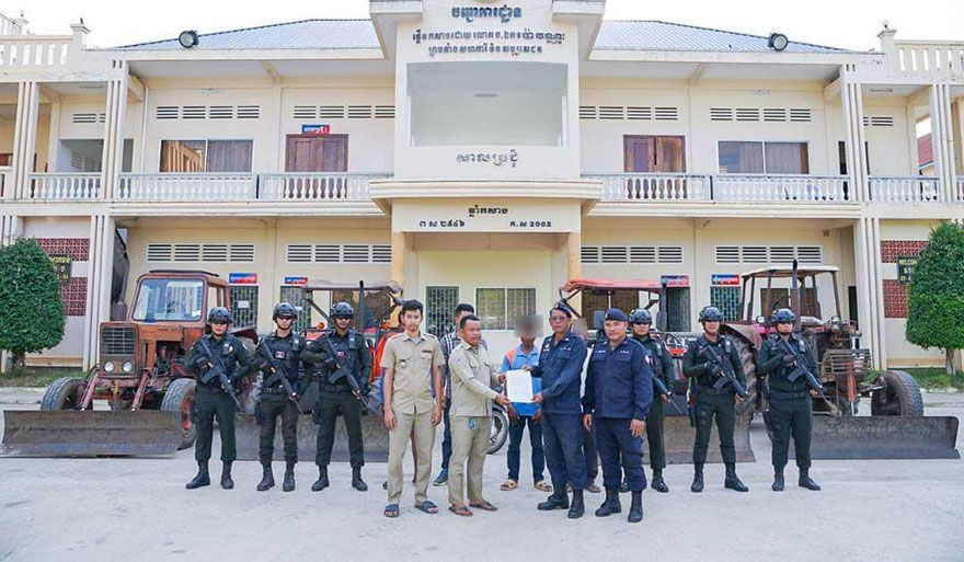 ខេត្តបាត់ដំបង ៖ ក្រុមជនលោ.ភលន់លួចឈូសឆាយទន្ទ្រានយកដីព្រៃលិចទឹក នៅតំបន់ទន្លេសាប ស្ថិតក្នុងភូមិសាស្ត្រ ស្រុកឯកភ្នំ ចំនួន០៤នាក់ និងត្រាក់ទ័រចំនួន៤គ្រឿង ដែលត្រូវកម្លាំងកងរាជអាវុធខេត្តចុះបង្ក្រាបកាលពីប៉ុន្មានថ្ងៃមុននេះ នៅរសៀលថ្ងៃទី២៤ ខែមិថុនា ឆ្នាំ២០២៣ កម្លាំងកងរាជអាវុធហត្ថ បានប្រគល់ជនសង្ស័យទាំង៤នាក់ជូនទៅឲ្យកម្លាំងជំនាញជលផល ដើម្បីចាត់ការតាមនីតិវិធីច្បាប់ហើយ។ នេះបើតាមប្រភពព័ត៌មានពីមន្ត្រីកងរាជអាវុធហត្ថបានប្រាប់ឱ្យដឹង។