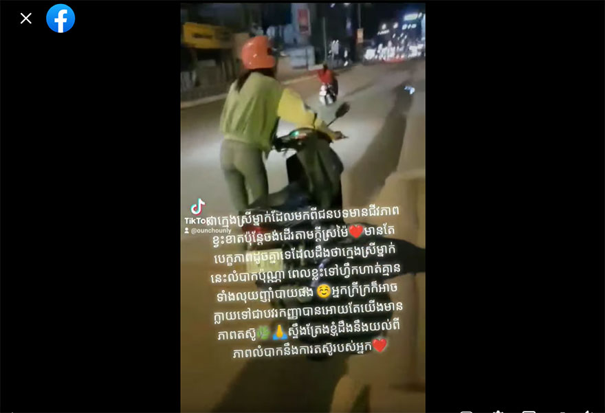 មហាជន ជាពិសេសបណ្តាអ្នកលេងបណ្តាញសង្គម បានបង្ហាញការចាប់អារម្មណ៍ និងភ្ញាក់ផ្អើលយ៉ាងខ្លាំង បន្ទាប់ពីឃើញវីដេអូឃ្លីបមួយបង្ហាញពីបេក្ខភាព Miss Grand Cambodia មួយរូប កំពុងតែបណ្តើរម៉ូតូរបស់ខ្លួននៅតាមដងផ្លូវមួយនាពេលរាត្រី មុលហេតុដោយសារតែ