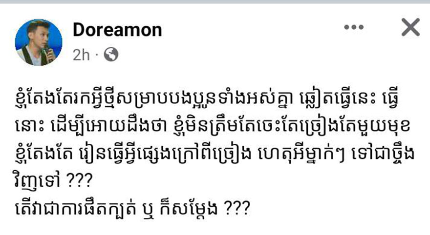 លោកបញ្ជាក់ថា «ការងារៗ ត្រូវដឹងថាការងារ កុំផុសយក Attention ដល់តែខ្ញុំថើបមាត់ប្រុសគ្នាឯងមែន បានពេញចិត្តអ្នកទាំងអស់គ្នា ហាស?»។