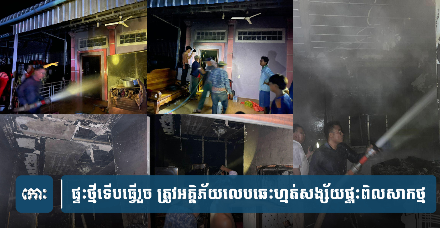 ខេត្តបាត់ដំបង ៖ លំនៅឋានដែលទើបធ្វើរួច និងទើបចូលស្នាក់នៅ ក៏ត្រូវអគ្គិភ័យលេបត្របាក់អស់គ្មានសល់ កាលពីវេលាម៉ោង០៥ និង៣០នាទីល្ងាចថ្ងៃទី១៣ កញ្ញា នៅចំណុចភូមិថ្កូវ ឃុំឈើទាល ស្រុកបាណន់ ដែលម្ចាស់ផ្ទះអះអាងថា បណ្ដាលមកពីការទុស្សេខ្សែឌុយសាកថ្មពិលទុកចោលនៅលើខៅអាវ ដែលខាតបង់អស់ជាង១ម៉ឺនដុល្លារ តែពុំមានគ្រោះថ្នាក់មនុស្សទេ ។