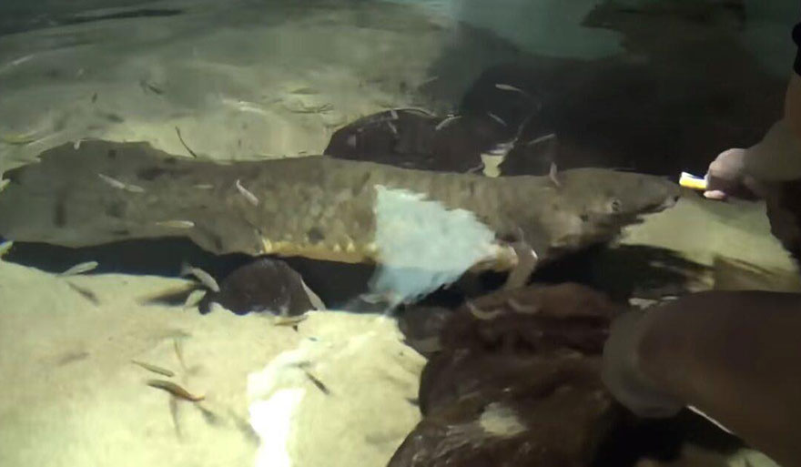 ត្រីមួយក្បាលនេះ កាលពីមុនគ្រាន់តែជាត្រីដ៏សែនតូចមួយក្បាលតែប៉ុណ្ណោះ ប៉ុន្តែនៅពេលនេះ វានៅតែខំប្រឹងបន្តលូតលាស់រហូត ដូចឆ្នាំកន្លងទៅអញ្ចឹង ហើយជីវិតរបស់ត្រីនេះត្រូវបានគេដាក់នៅក្នុងអាងចិញ្ចឹមត្រី ដែលមើលទៅដូចជាសាកសមនឹងវាខ្លាំងណាស់។ ជាពិសេស អ្នកដែលសម្លឹងមើលត្រីនេះ នៅតាមជញ្ជាំងកញ្ចក់ហាក់មិនមានអារម្មណ៍តានតឹង ឬមួយក៏មានអារម្មណ៍ថា ភ័យខ្លាចចំពោះត្រីមួយក្បាលនេះសូម្បីតែបន្តិចឡើយ។ ហើយត្រីនេះ នៅតែហែលចុះឡើងៗ ដូចជាសប្បាយរីករាយជាមួយនឹងការសម្លឹងមើលរបស់អ្នកទស្សនាជាខ្លាំង រហូតមកដល់សព្វថ្ងៃនេះ។
