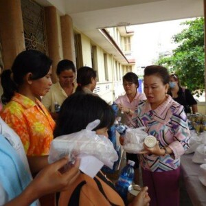 រាជធានីភ្នំពេញ ៖ អ្នកជំងឺដែលកំពុងសម្រាកព្យាបាលនៅមន្ទីរពេទ្យព្រះកុសុមៈចំនួន៦២នាក់ រួមជាមួយអ្នកជំងឺកំពុងសម្រាកព្យាបាលនៅមន្ទីរពេទ្យមិត្តភាពខ្មែរ-សូវៀត ហៅពេទ្យរុស្ស៊ីចំនួន៣៥០នាក់ ព្រឹកថ្ងៃទី១៧ ឧសភា ដែលជាថ្ងៃពេញបូណ៍មី ចំថ្ងៃបុណ្យវិសាខ បូជា បានទទួលការឧបត្ថម្ភកញ្ចប់អាហារថ្ងៃត្រង់ម្នាក់មួយកញ្ចប់ពីសំណាក់លោកជំទាវឧកញ៉ា យីន ផាន្នី នាយិកាគ្រប់គ្រងទីផ្សារនៃសារព័ត៌មានកោះសន្តិភាព។