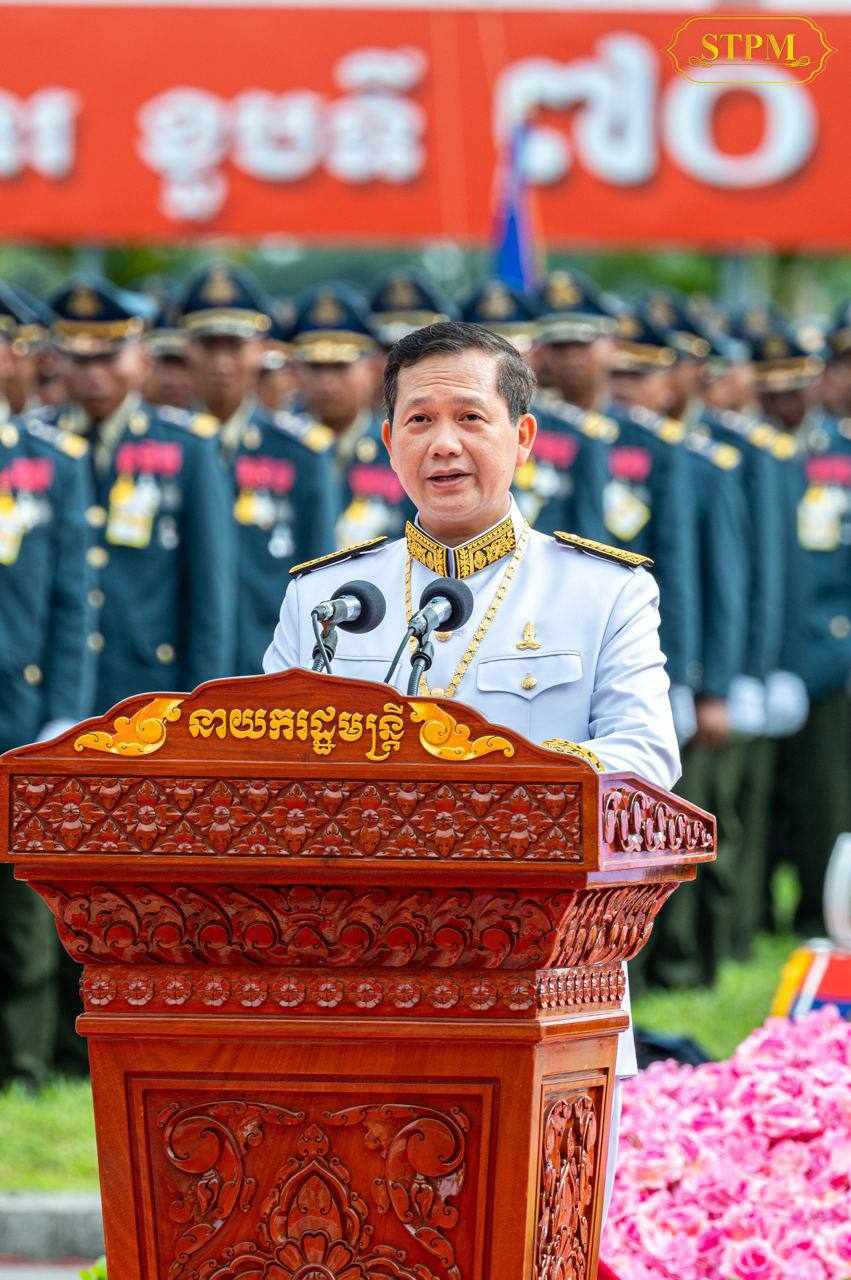 ថ្លែងក្នុងឱកាសអញ្ជើញចូលរួម ពិធីអបអរសាទរ ខួបអនុស្សាវរីយ៍ លើកទី៧០ ទិវាបុណ្យឯករាជ្យជាតិ ៩ វិច្ឆិកា និងទិវាកំណើតកងយោធពលខេមរភូមិន្ទ ថ្ងៃទី៩ ខែវិច្ឆិកា ឆ្នាំ២០២៣ ក្រោមព្រះរាជាធិបតីដ៏ខ្ពង់ខ្ពស់បំផុតរបស់ ព្រះករុណា ព្រះបាទ សម្តេចព្រះបរមនាថ នរោត្តម សីហមុនី ព្រះមហាក្សត្រនៃកម្ពុជា សម្តេចនាយករដ្ឋមន្ត្រី បានលើកឡើងថា រាជរដ្ឋាភិបាល នីតិកាលទី៧ នៃរដ្ឋសភា បានប្តេជ្ញាចិត្តសម្រេចឱ្យបាននូវគោលដៅចម្បង ជាយុទ្ធសាស្ត្រចំនួន៥ ដែលបានដាក់ចេញក្នុងកម្មវិធីនយោបាយ និង យុទ្ធសាស្ត្របញ្ចកោណ-ដំណាក់កាលទី១ ។