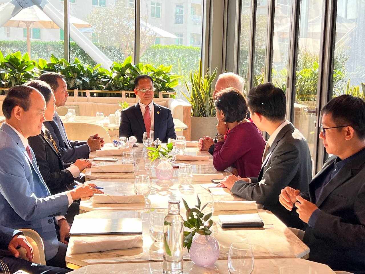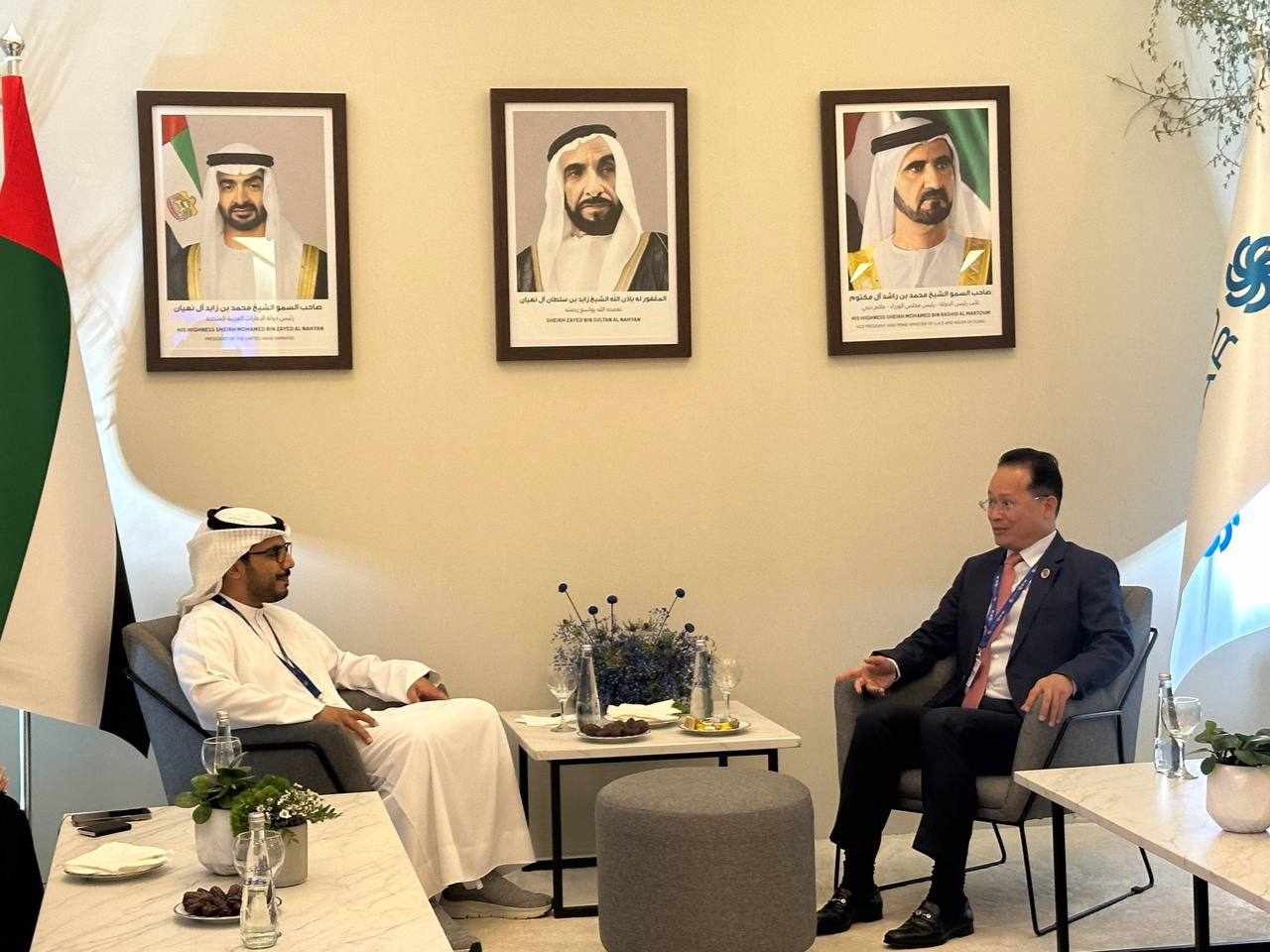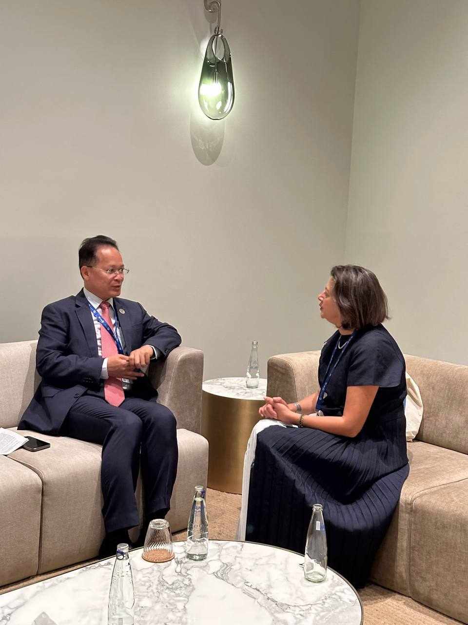 ក្នុងជំនួបនីមួយៗ ឯកឧត្តមរដ្ឋមន្ត្រី បានលើកឡើងអំពីវិស័យអាទិភាព និងការវិនិយោគបៃតង នៅកម្ពុជា ការបង្កើនគម្របព្រៃឈើឲ្យបាន៦០% ការលើកកម្ពស់ជីវភាពសហគមន៍ តាមរយៈការដាំ ឈើ ឬស្សីជាដើម និងការជំរុញកម្ពុជាស្អាត តាមរយៈយុទ្ធនាការមិនប្រើថង់ប្លាស្ទិក ស្របតាមយុទ្ធ សាស្ត្របញ្ចកោណ ដំណាក់កាលទី១ របស់រាជរដ្ឋាភិបាលកម្ពុជា និងជាពិសេសគាំទ្រ ចំពោះយុទ្ធសា ស្ត្រចក្រាវិស័យបរិស្ថាន ដែលបានផ្តល់អាទិភាពទៅលើភាពស្អាត ភាពបៃតង និងចីរភាព៕