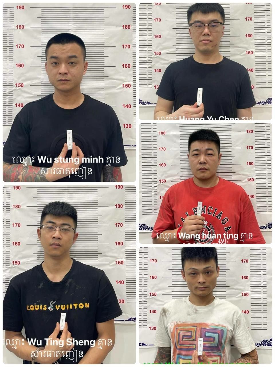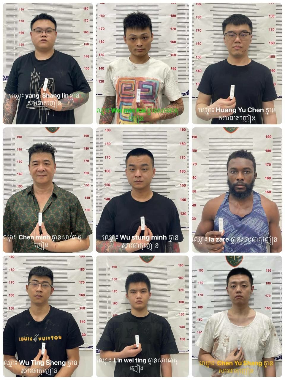ជនសង្ស័យទាំង ១០នាក់នោះ រួមមាន៖ ១.ឈ្មោះ LA ZARE ភេទប្រុស អាយុ ៣០ ឆ្នាំ ជនជាតិ កាម៉ារ៉ូន ស្នាក់នៅខុនដូរ R&F ជាន់ទី៦ បន្ទប់លេខ៦០១ មហាវិថីសម្តេចហ៊ុនសែន សង្កាត់ចាក់អង្រែលើ ខណ្ឌមានជ័យ រាជធានីភ្នំពេញ។ ២.ឈ្មោះ CHEN MING (ឈិនម៉េង) ភេទប្រុស អាយុ ២៤ឆ្នាំ ជនជាតិចិន សញ្ជាតិខ្មែរ ស្នាក់នៅផ្ទះលេខ១៤ ផ្លូវសប៊ិត ភូមិ ១៤ សង្កាត់ទន្លេបាសាក់ ខណ្ឌចំការមន រាជធានីភ្នំពេញ មុខរបរ ពាណិជ្ជករ។ ៣.ឈ្មោះ CHEN YUSHANG ភេទប្រុស អាយុ២៤ ឆ្នាំ ជនជាតិចិន ស្នាក់នៅសណ្ឋាគារសាន់សាង ផ្លូវលេខ១១១ កែងផ្លូវលេខ២៣២ សង្កាត់បឹងព្រលឹត ខណ្ឌ៧មករា រាជធានីភ្នំពេញ មុខរបរ ចុងភៅ។ ៤.ឈ្មោះ WEI MING KAI ភេទប្រុស អាយុ៣៣ ឆ្នាំ ជនជាតិចិន ស្នាក់នៅសណ្ឋាគារសាន់សាង ផ្លូវលេខ១១១ កែងផ្លូវលេខ ២៣២ សង្កាត់បឹងព្រលឹត ខណ្ឌ៧មករា រាជធានីភ្នំពេញ មុខរបរ បុគ្គលិកក្រុមហ៊ុន។ ៥.ឈ្មោះ YANG SHANG LIN ភេទប្រុស អាយុ ២៤ឆ្នាំ ជនជាតិចិន ស្នាក់នៅសណ្ឋាគារសាន់សាង ផ្លូវលេខ១១១ កែងផ្លូវលេខ២៣២ សង្កាត់បឹងព្រលឹត ខណ្ឌ៧មករា រាជធានីភ្នំពេញមុខរបរ បុគ្គលិកក្រុមហ៊ុន។ ៦.ឈ្មោះ WU TSUNG MING ភេទប្រុស អាយុ ៣០ឆ្នាំ ជនជាតិ ចិន ស្នាក់នៅសណ្ឋាគារសាន់សាង ផ្លូវលេខ១១១ កែងផ្លូវលេខ២៣២ សង្កាត់បឹងព្រលឹត ខណ្ឌ៧មករា រាជធានីភ្នំពេញ មុខរបរ បុគ្គលិកក្រុមហ៊ុន។ ៧.ឈ្មោះ HUANG YU CHEN ភេទប្រុស អាយុ ២៨ឆ្នាំ ជនជាតិចិន ស្នាក់នៅសណ្ឋាគារសាន់សាង ផ្លូវលេខ១១១ កែងផ្លូវលេខ២៣២ សង្កាត់បឹងព្រលឹត ខណ្ឌ៧មករា រាជធានីភ្នំពេញ មុខរបរ បុគ្គលិកក្រុមហ៊ុន។ ៨.ឈ្មោះ LIN WEI TING ភេទប្រុស អាយុ ១៩ឆ្នាំ ជនជាតិចិន ស្នាក់នៅសណ្ឋាគារសាន់សាង ផ្លូវលេខ១១១ កែងផ្លូវលេខ២៣២ សង្កាត់បឹងព្រលឹត ខណ្ឌ៧មករា រាជធានីភ្នំពេញ មុខរបរ ចុងភៅ។ ៩.ឈ្មោះ WU TING SHENG ភេទប្រុស អាយុ ២៦ឆ្នាំ ជនជាតិចិន ស្នាក់នៅសណ្ឋាគារសាន់សាង ផ្លូវលេខ១១១ កែងផ្លូវលេខ២៣២ សង្កាត់បឹងព្រលឹត ខណ្ឌ៧មករា រាជធានីភ្នំពេញ មុខរបរ ចុងភៅ។ ១០.ឈ្មោះ WANG HUANG TING ភេទប្រុស អាយុ ៣០ឆ្នាំ ជនជាតិចិន ស្នាក់នៅផ្ទះលេខ៣៩ ផ្លូវលេខ៩៩ សង្កាត់បឹងត្របែក ខណ្ឌចំការមន រាជធានីភ្នំពេញ មុខរបរ ចុងភៅ។