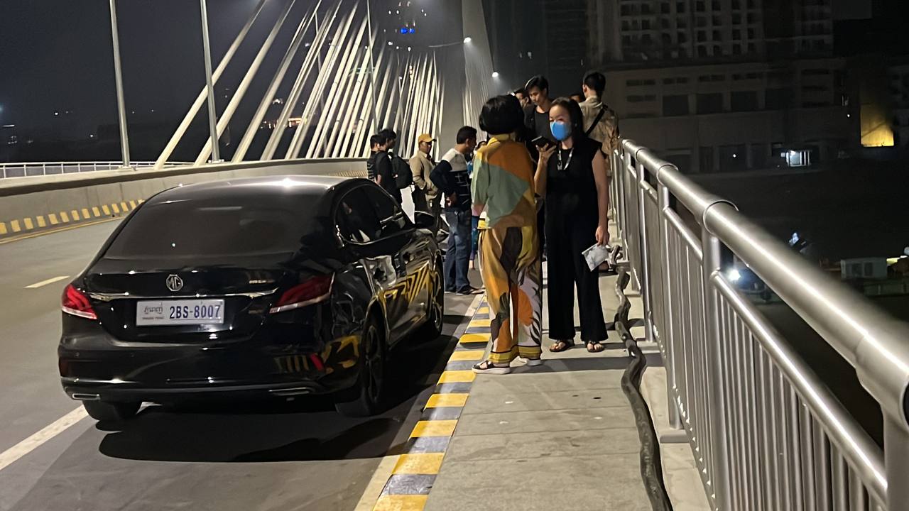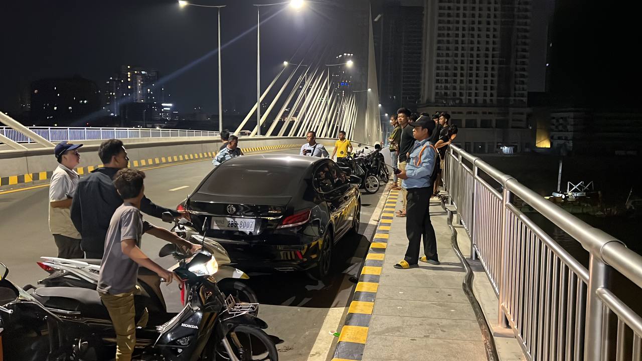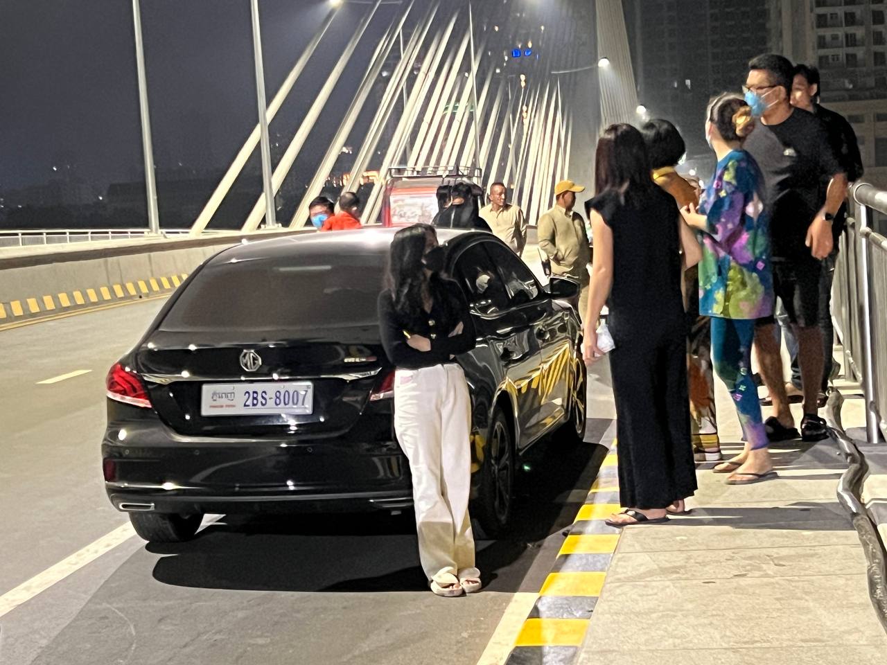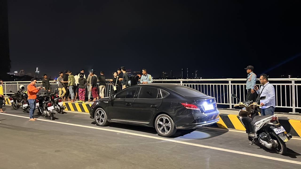 អ្នកឃើញហេតុការណ៍បានបន្តថា គេបានឃើញរថយន្តស៊េរីទំនើប១គ្រឿង ពណ៌ខ្មៅ ម៉ាកអឹមជី(MG) ដែលមានស្លាកលេខ ភ្នំពេញ 2BS-8007 ចតចោលកណ្តាលស្ពានក្បែរបុរសខាងលើផងដែរ។ លុះដល់ម៉ោង១និង២០នាទីរំលងអធ្រាត្រថ្ងៃខែឆ្នាំដដែល ស្រាប់តែឃើញមានមនុស្សច្រើននាក់ឈរចោមរោមក្បែររថយន្ត១គ្រឿងនោះ ដោយខ្លះកាន់បង្កាន់ដៃស្ពានរួចអើតមើលទៅទឹកទន្លេ ខ្លះទៀតក៏ឈប់មើល ស្រាប់តែឃើញស្បែកជើងចំពាម១គូ នៅកន្លែងបុរសដែលឈរនោះ ក៏សង្ស័យថាបុរសនោះលោតទឹកតែម្តង។