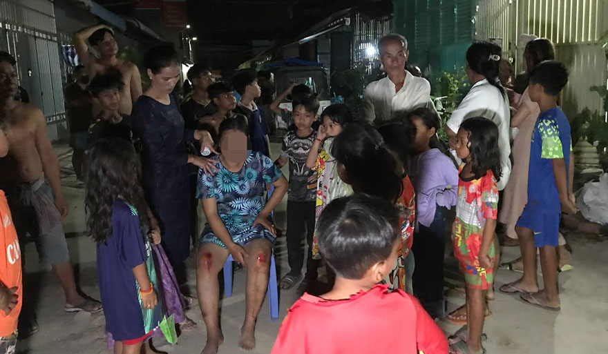 ស្ត្រីរងគ្រោះបន្តថា «ខណៈពេលនោះ ស្រាប់តែមានជនសង្ស័យម្នាក់ មិនស្គាល់អត្តសញ្ញាណ បានដើរមក ហើយរត់ចូលទៅក្នុងរថយន្ត រួចបើករថយន្តចេញពីកន្លែងកើតហេតុតែម្តង។ ភ្លាមៗនោះដែរ រូបគាត់ (ស្ត្រីជាប្រពន្ធ) ក៏រត់ទៅតោងកញ្ចក់រថយន្ត និងស្រែកឆោឡោឲ្យអ្នកភូមិជួយ ប៉ុន្តែជនសង្ស័យនៅតែបន្តបន្ថែមល្បឿន បណ្ដាលឱ្យរូបគាត់ដួលរងរបួសរលាត់ជើងទាំង២ រួចបើករត់គេចខ្លួនបាត់ស្រមោលតែម្ដង»។