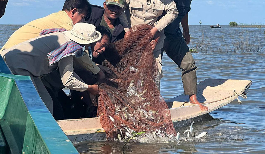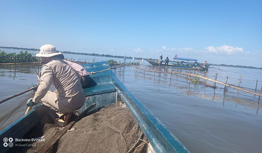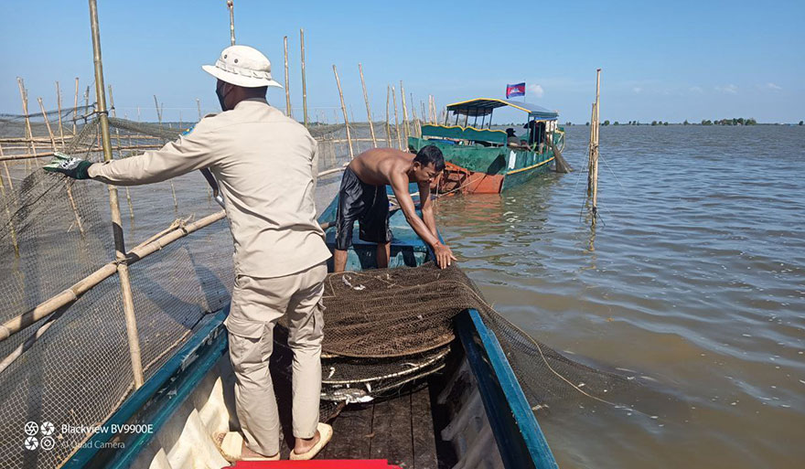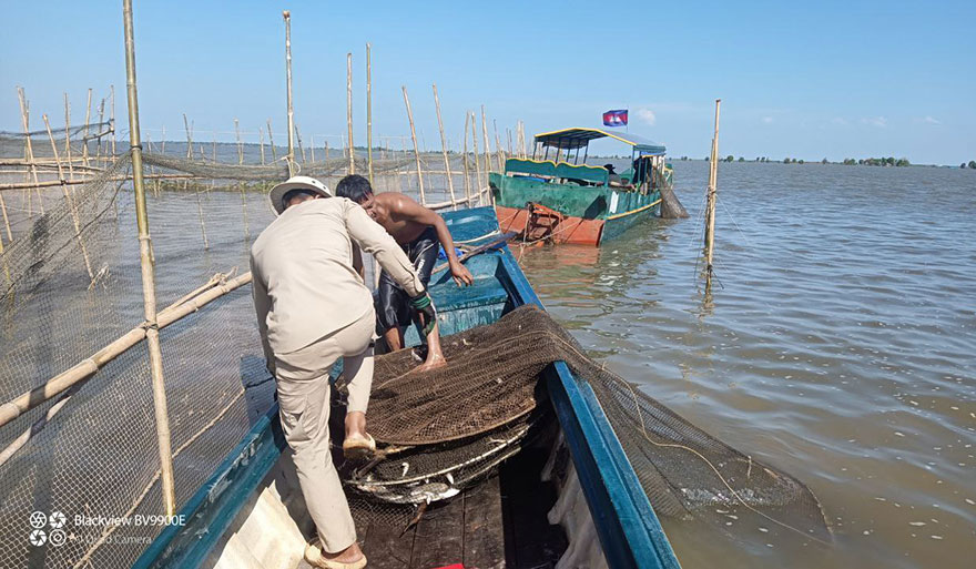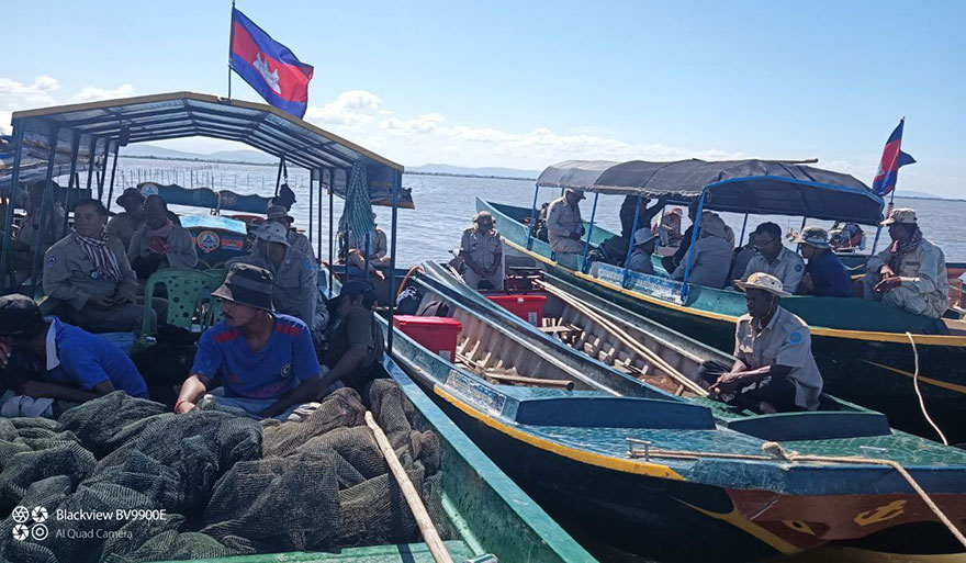 មន្ត្រីរដ្ឋបាលជលផលចំនួន៣ខេត្ត រួមនឹងសមត្ថកិច្ចចម្រុះដឹកនាំដោយអនុរដ្ឋលេខាធិការក្រសួងកសិកម្ម រុក្ខាប្រមាញ់ និងនេសាទ