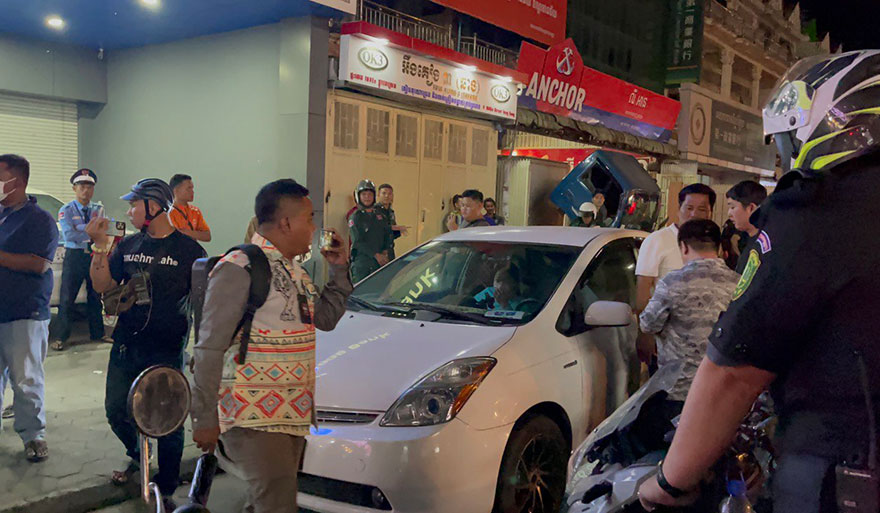 រាជធានីភ្នំពេញ ៖ បើតាមសេចក្តីរាយការណ៍បានឱ្យដឹងថា ប្តីប្រពន្ធ២នាក់បើករថយន្តតូយ៉ូតាព្រុស បានទាស់ពាក្យសម្ដីគ្នានឹងយុវជន៣នាក់ ដែលជិះម៉ូតូហុងដាឌ្រីមតាមដងផ្លូវ រហូតកើតមានពាក្យនិយាយថា «ដកកាំភ្លើ.ងគំរា.ម» បង្កឱ្យមានការភ្ញាក់ផ្អើលដល់កម្លាំងសមត្ថកិច្ចព្រហ្មទណ្ឌកម្រិតស្រាល កាលពីវេលាម៉ោង១០និង២០នាទីយប់ ថ្ងៃទី១៩ ខែធ្នូ ឆ្នាំ២០២៣ តាមបណ្ដោយផ្លូវបេតុងទួលពង្រ ស្ថិតក្នុងសង្កាត់ចោមចៅទី១ ខណ្ឌពោធិ៍សែន បានធ្វើការប្រដេញឃាត់រថយន្តបាន នៅចំណុចមុខបញ្ជាការដ្ឋានការកងរាជអាវុធហត្ថរាជធានីភ្នំពេញ ផ្លូវវេងស្រេង សង្កាត់ស្ទឹងមានជ័យទី៣ ខណ្ឌមានជ័យ ដើម្បីធ្វើការសួរនាំ។
