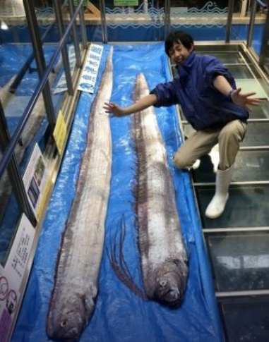 ថៃ ៖ ការប្រទះឃើញវត្តមានត្រី oarfish មិនមែនជាប្រផ្នូលធម្មតានោះទេសម្រាប់សកលលោក ជាពិសេសក្នុងជំនឿ តាំងពីយូលង់របស់ប្រជាជនជប៉ុនដែលចាត់ទុកថា oarfish គឺជាអ្នកនាំសារពីព្រះសមុទ្រ ដើម្បីព្រមានពួកគេថា គ្រោះមហន្តរាយនឹងមកដល់។ រឿងព្រេងជប៉ុនមួយបានកត់ត្រាឈ្មោះត្រីនេះថា «Earthquake Fish» ឬ «ត្រីរញ្ជួយដី» ព្រោះវារមែងបង្ហាញខ្លួនឱ្យឃើញ នៅមុន ឬក្រោយពេល នៃគ្រោះរញ្ជួយដីក្នុងមហាសមុទ្រ ដែលយើងគ្រប់គ្នាហៅតាមភាសាជប៉ុនថា «រលកយក្សស៊ូណាមិ»។