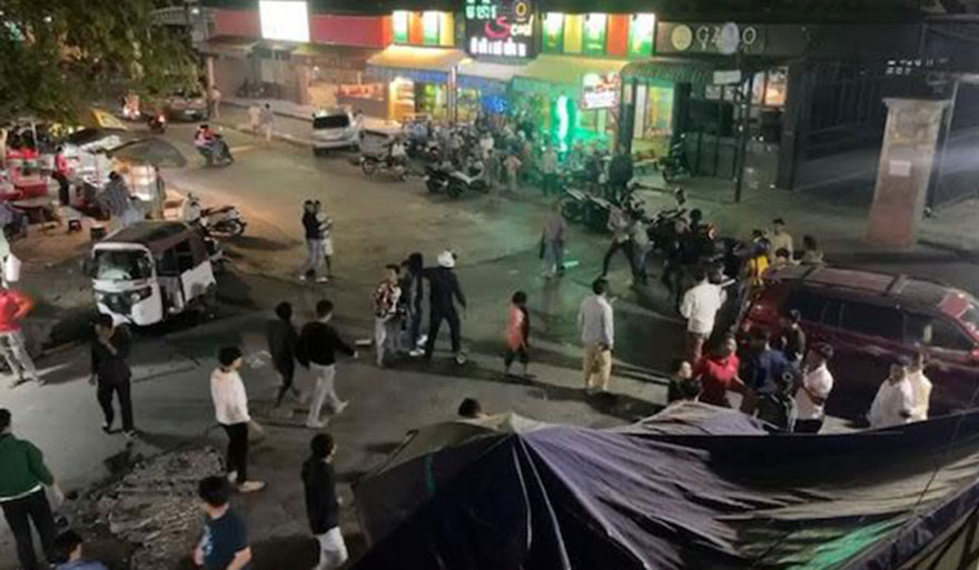 សមត្ថកិច្ចបញ្ជាក់បន្តថា «បន្ទាប់មកភាគីទាំងសងខាង ក៏នាំគ្នាទៅដល់ខាងក្រៅការដ្ឋាន រួចវា.យតប់គ្នាពេញផ្លូវតែម្ដង។ ភ្លាមនោះសមត្ថកិច្ចឃើញបែបនេះ ក៏ចុះអន្តរាគមន៍ឃាត់បុរសម្នាក់ឈ្មោះ ឃុន ស៊ីណា ដែលដៃកាន់ដំបងដែករលាត់ ប៉ុន្តែពេលចូលទៅដល់ ក៏ត្រូវបុរសរូបនេះវា.យមកលើសមត្ថកិច្ចចំក្បាល១ដំបង បណ្ដាលពកហើម ទើបកម្លាំងអន្តរាគមន៍ចេញឃាត់បុរស២នាក់ ដែលជាគូរកនជាមួយគ្នា យកមកសាកសួរនៅប៉ុស្តិ៍តែម្ដង ។ ចំណែកភាគីម្ខាងទៀតដែលមានទំនាស់នោះ នាំគ្នារត់គេចបាត់បាត់ស្រមោល»។