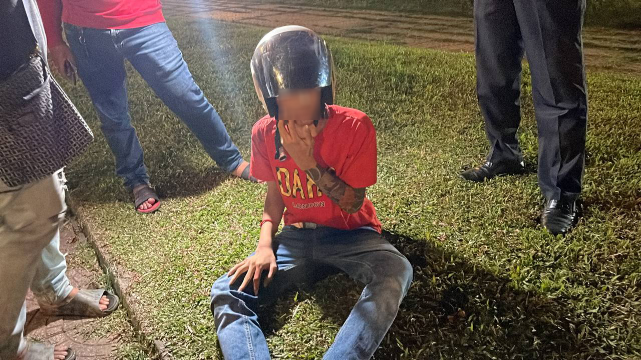 រាជធានីភ្នំពេញ ៖ យុវជន២នាក់ជិះម៉ូតូមួយគ្រឿងយ៉ាងលឿន ដើម្បីគេចពីក្រុមក្មេងស្ទាវមួយក្រុម